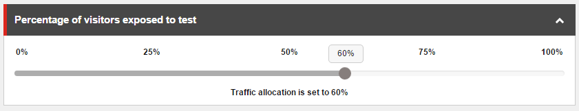 The Traffic Allocation slider sets the percentage of visitors that will experience the Test when they access the applicable pages. Higher the allocation the bigger the sample size and in theory, the faster you will achieve a result. You may opt for a lower allocation if the change is risky, therefore only a small subset of the visitors will see it.